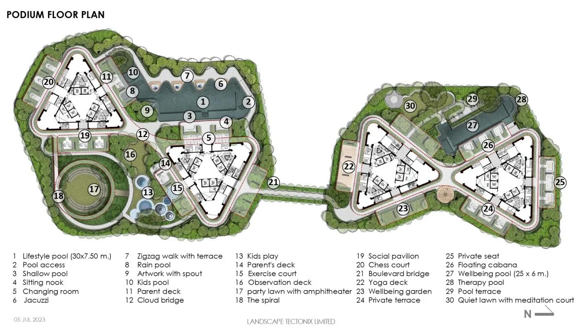Apartment sizes range from 2258 to 4755 sq. ft., offering luxury and comfort for every lifestyle. Residents will enjoy top-tier amenities, including a gymnasium, power backup, children’s play area, kid’s pool, swimming pool, library, and closed car parking.