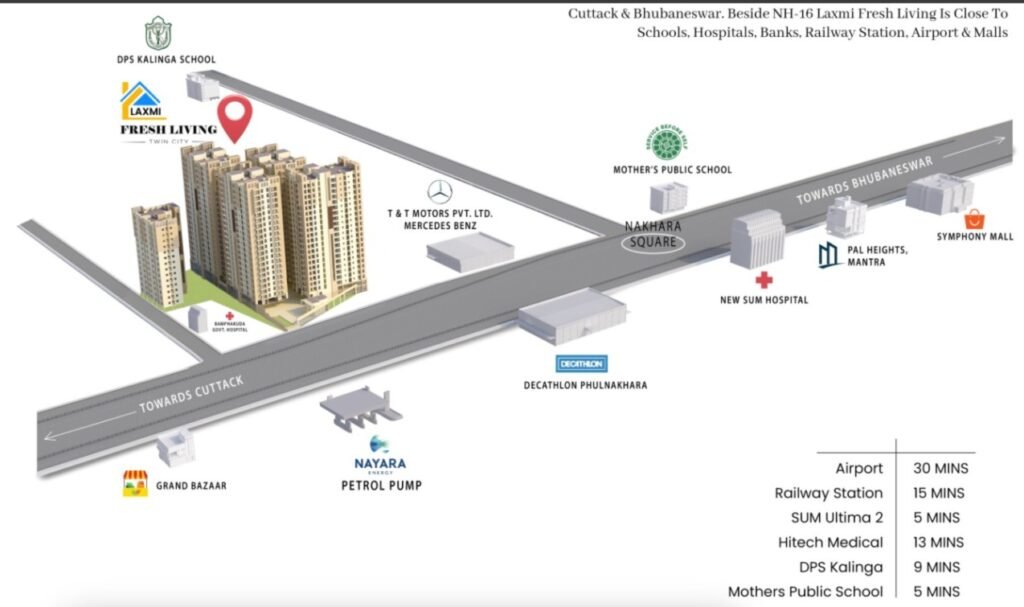 Laxmi Fresh Living in Phulnakhara, Bhubaneswar, is envisioned as a modern sanctuary that combines luxury living with a self-sustained lifestyle. Developed by Laxmi Infra, the project focuses on comfort, convenience, and contemporary design.